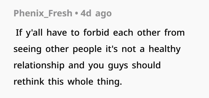 That’s why many people online debate whether asking a partner to cut someone off is controlling or reasonable.