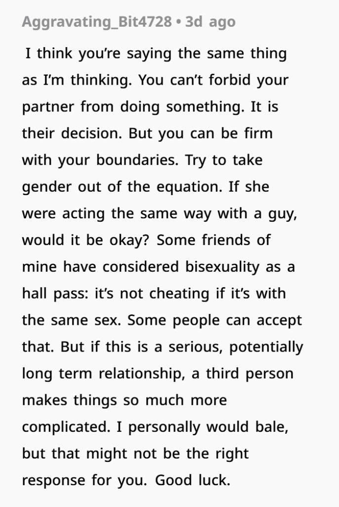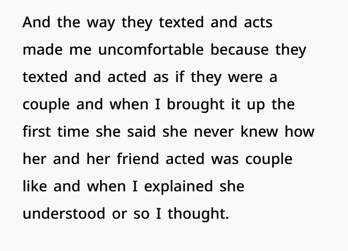 The friend identifying as lesbian while showing interest in the girlfriend adds another emotional complication. Some people assume same-gender friendships are automatically harmless, but attraction can still exist in any direction. When attraction enters a friendship, boundaries usually become even more important.