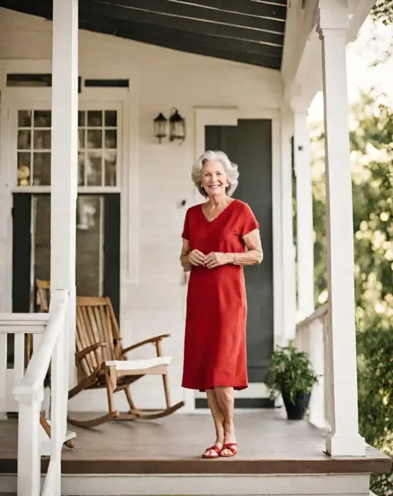 V-necks, bateau necklines, or cap sleeves are all age-appropriate and stylish. Add a belt, ribbon, or sash for a touch of waist definition. Throw on a blazer or cardigan for formal events, church, or office wear. This is one of those timeless dresses for older ladies that you’ll never regret owning.