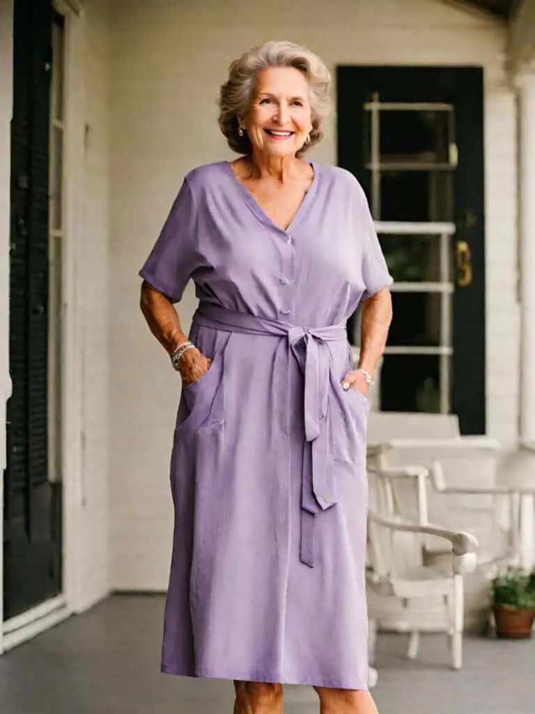 Breathable cotton fabrics make it a summer essential, especially if you live somewhere warm. For everyday wear, pair it with loafers or canvas sneakers. Add a belt if you want a little more shape. This style works beautifully on both petite and plus-size senior women.