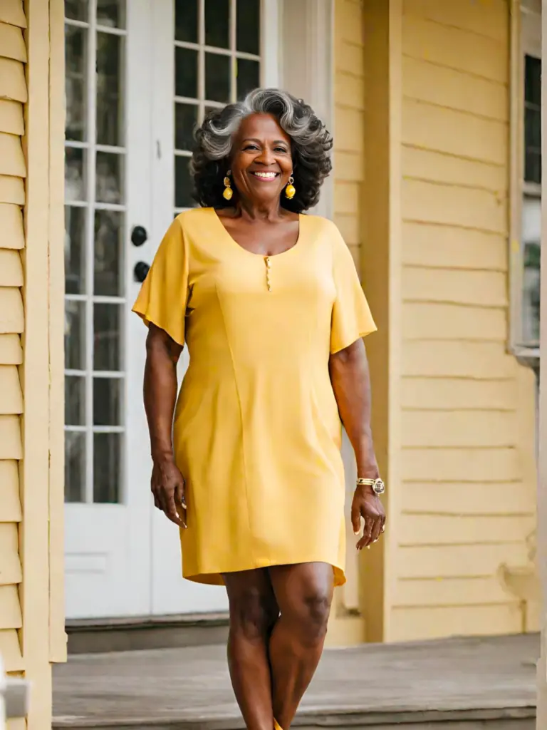 Stick to solid shades like navy, white, or black for a timeless look. Pair it with sandals or loafers during the day, or dress it up with heels for a night out. It’s one of the most versatile casual dresses for older ladies, perfect for any wardrobe.