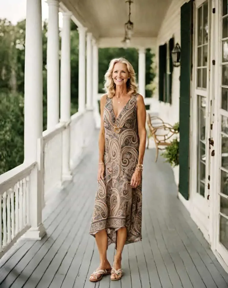 The maxi dress is hands-down one of the best dresses for older ladies. It flatters every body type, gives full coverage, and feels comfortable in every season. Whether you’re slim, curvy, or in between, a maxi dress drapes beautifully.