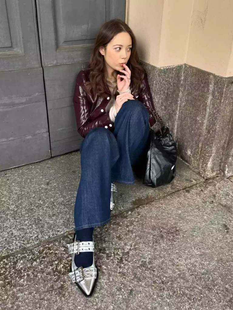 Metallic flats and a slouchy handbag add just enough personality. It’s giving modern indie sleaze but grown up. Perfect if you want that fashion-forward fall look without going full runway mode.