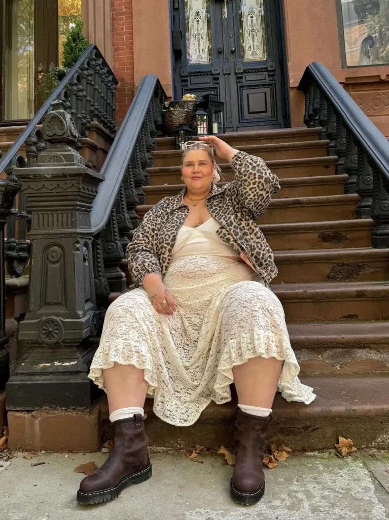 Rugged boots give it that contrast everyone loves in 2026 fashion trends. It’s practical for those warm afternoons and chilly evenings. Think transitional weather outfits that actually make sense. Stylish and functional.