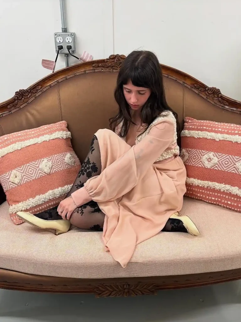 Soft but moody. That’s the energy here. A pastel prairie dress paired with lace tights creates that dreamy, romantic fall outfit everyone saves on Pinterest. It feels vintage-inspired but still fresh for 2026 fashion trends.