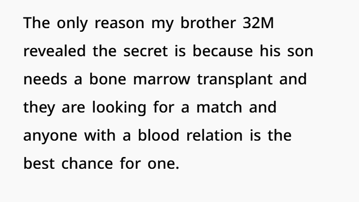 While the emotional fallout was intense, there was a surprising twist in the form of a happy ending. The original reason the 32-year-old brother came forward was to find a bone marrow match for his son, who needed a transplant. The shocking news here is that even though none of the immediate family members were a match—siblings, cousins, or uncles—someone completely unrelated stepped in.