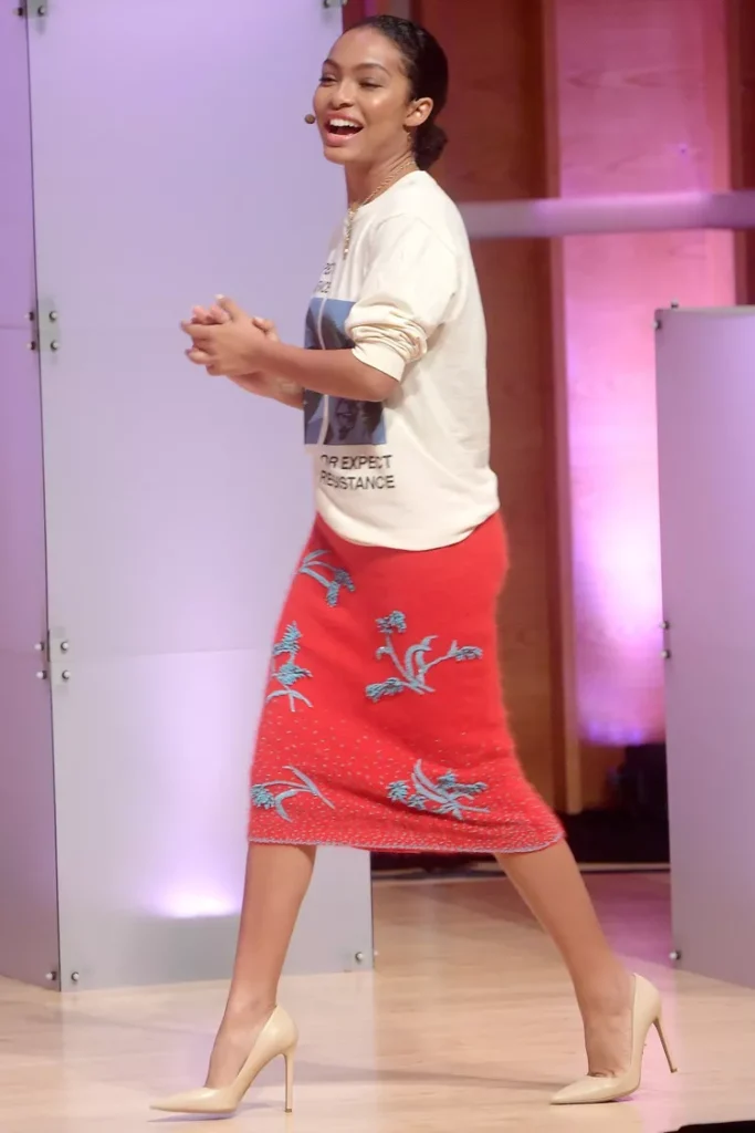 A wide waistband, like Ashley Graham wears, highlights your waist and flatters your curves. It instantly gives your outfit shape and makes you feel more confident.