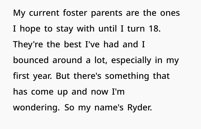 The poster explained that he really liked his current foster parents and wanted to stay with them at least till he was 18, as he had been moved around a lot before