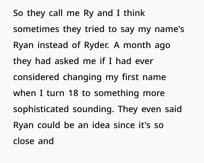 Ryder is 16, living in foster care, and already feeling the weight of decisions most adults struggle with. His foster parents keep pushing him to change his name when he turns 18 — something “more professional” like Ryan. They say it’ll help with jobs, interviews, and a future career.