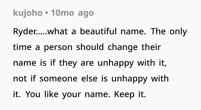 - Open Conversations: Make it clear Ryder’s choice is respected, whether he changes his name or not.