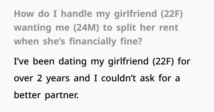 Money fights are one of the biggest reasons couples argue, and honestly this situation sits right at the intersection of relationship finance advice, modern dating expectations, and financial compatibility in relationships. When you zoom out a little, what’s happening here isn’t really about rent. It’s about expectations, perceived sacrifice, and how both partners view fairness.