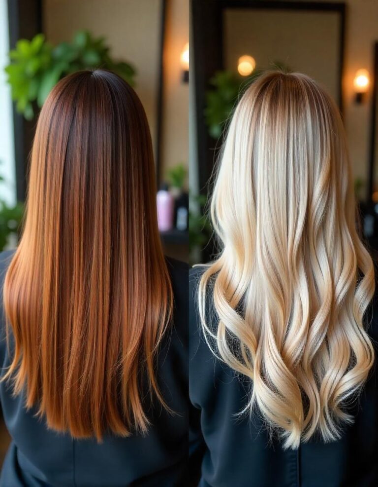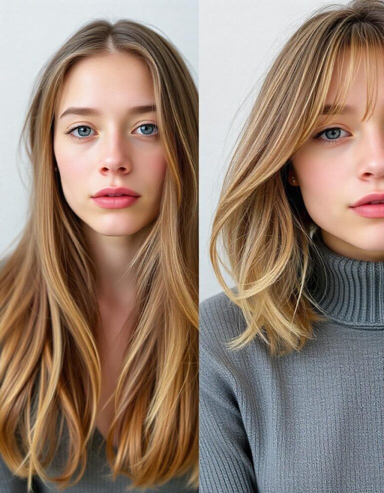 The easy fix? Go just one or two shades lighter than your natural color. Softer shades are way more flattering and make your skin look fresh. Adding warm tones like honey blonde, soft caramel, chestnut brown, or golden red highlights can instantly brighten your face and give you that healthy glow. No wonder so many people search “best hair color to look younger” or “anti-aging hair color trends for women.” These shades are timeless.