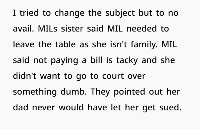 Then, MIL started fake crying and stormed off. It was dramatic, and the whole scene felt like something out of a bad reality show. She told her dad what happened, and that’s when the real fallout began.