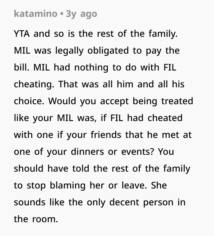 However, most commenters unanimously sided with her mother-in-law, dubbing both the author and her relatives toxic, and claiming they owe an apology to the poor lady