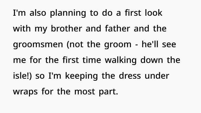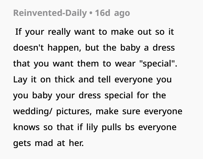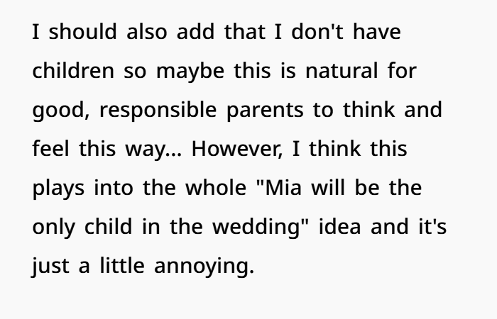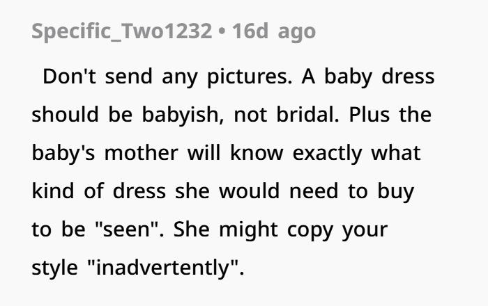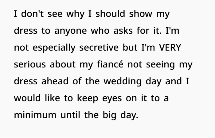 Let’s not forget that this isn’t just about aesthetics – it’s about the emotions behind the decision. Weddings are highly emotional events, and sometimes people’s desires can be driven by their own excitement or even insecurities. If you feel like a family member is pushing boundaries, don’t be afraid to express your wishes clearly. It’s okay to want your day to feel special without having anyone unintentionally steal the spotlight.