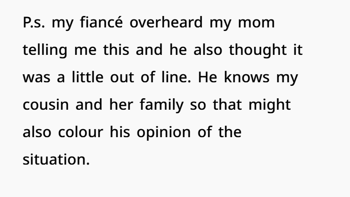The bride also suspected that it was more her aunt than her cousin pushing for this