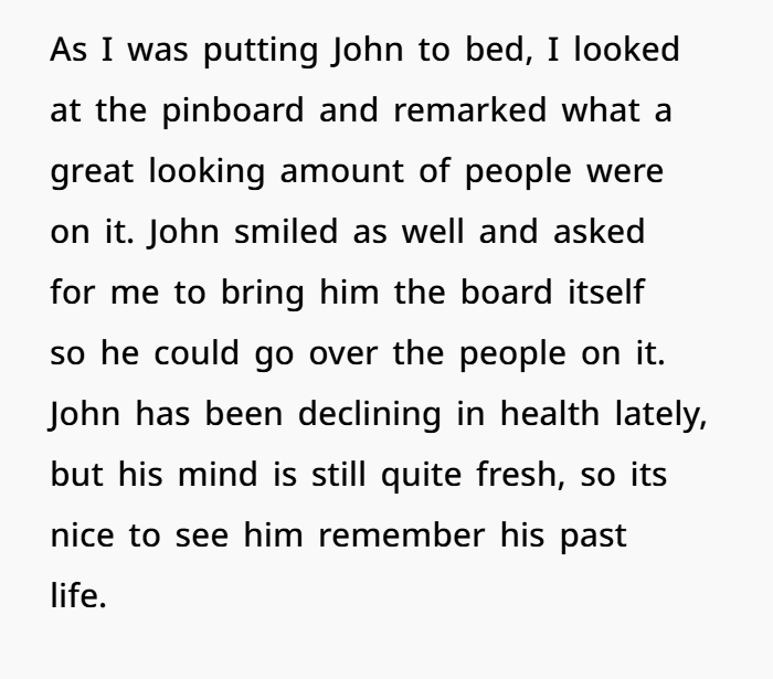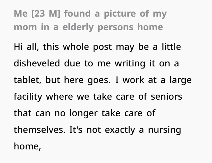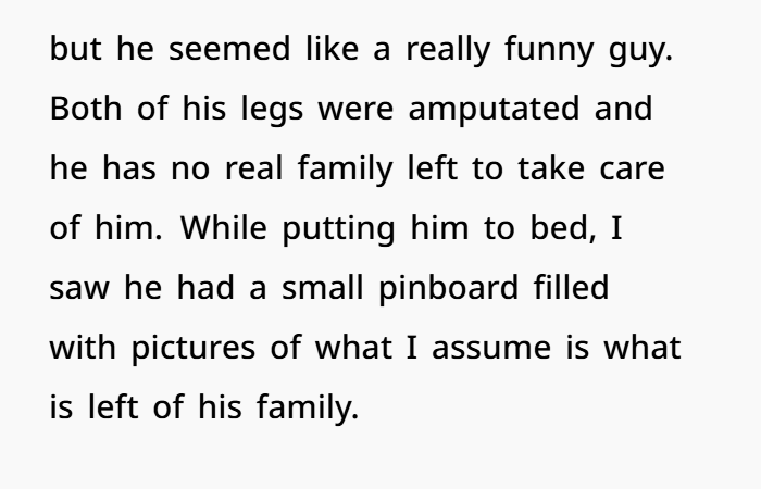 Sometimes life doesn’t unravel slowly. Sometimes it hits you all at once. That’s exactly what happened to a 23-year-old caregiver working in an assisted living facility. After being reassigned to a new wing, he began caring for a resident named “John,” a double amputee with no close family left. While helping him into bed one night, he noticed a small corkboard filled with old photographs — snapshots of a life lived long ago. And in the middle of them, staring back at him, was his mother.