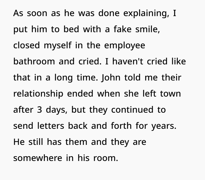 In this case, the affair is old. It ended. There was no continued physical relationship. The letters stopped eventually. The marriage survived decades.