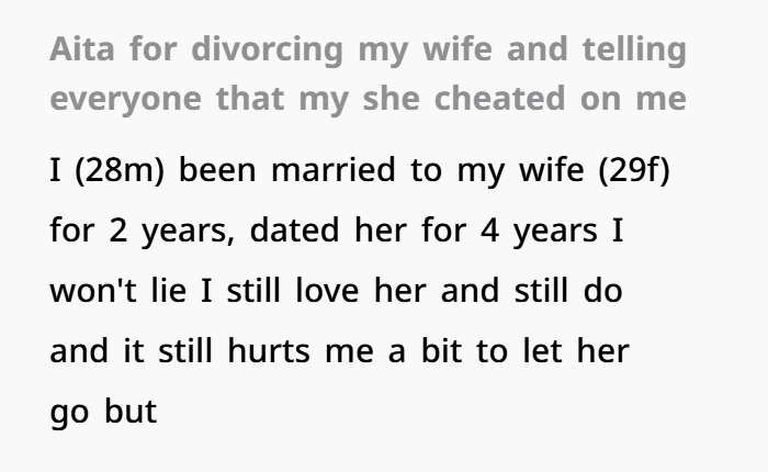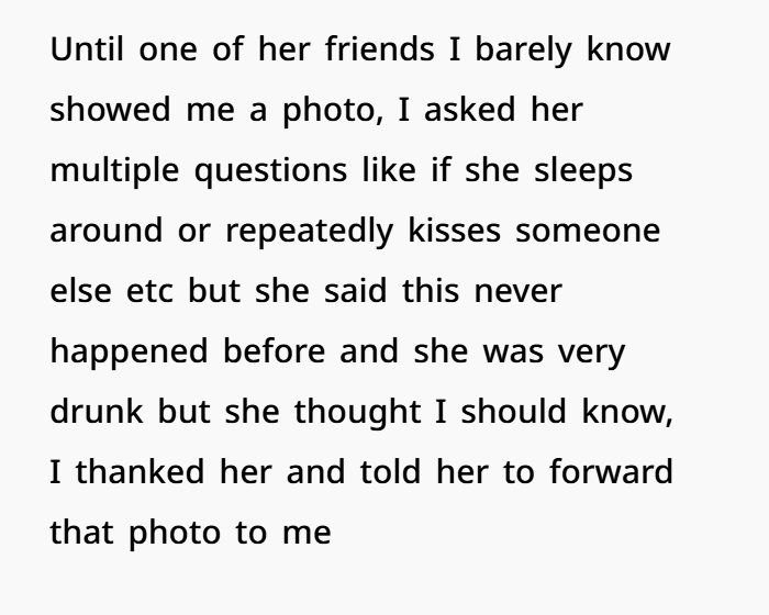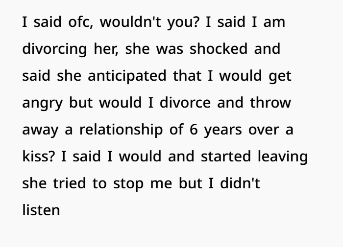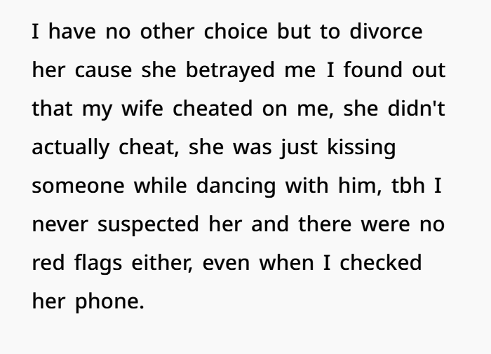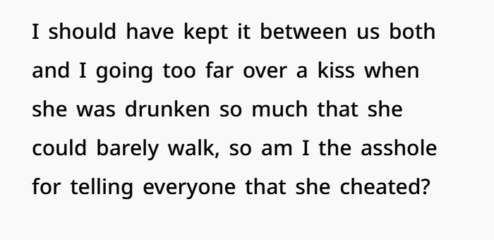 A 28-year-old husband says his marriage fell apart after he discovered his wife drunkenly kissing another man at a party. Although she insists it was a one-time mistake and never went further, he immediately decided to divorce her. The conflict escalated when he sent the evidence—a photo of the kiss—to both families to explain why the marriage was ending. Now his wife says he humiliated her and destroyed her relationships with her own family. He believes he simply told the truth. The question is whether exposing the situation publicly crossed a line.