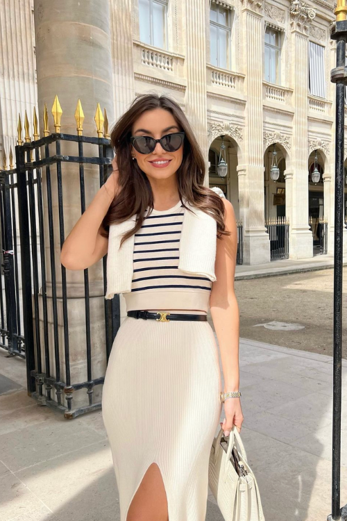 Whether you’re walking into a cocktail party, strolling the streets of Paris, or just pretending you’re summering in the Hamptons, these outfits will have you glowing with effortless elegance.