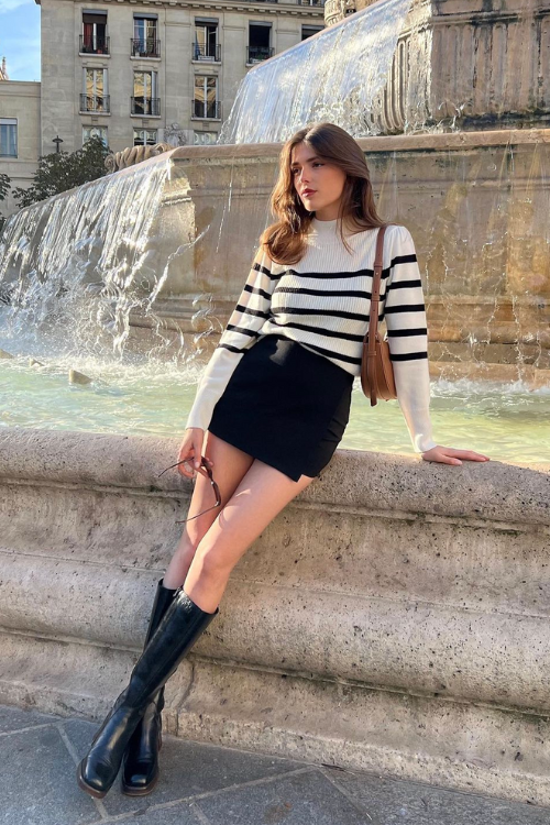 💡 Style Tip: If you wear a shorter skirt, balance it out with a modest top. Knee-high boots always look more luxe than ankle boots.