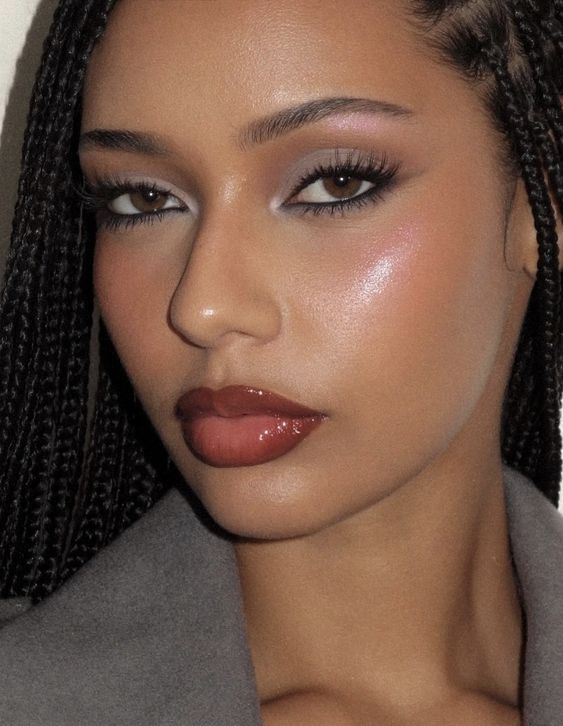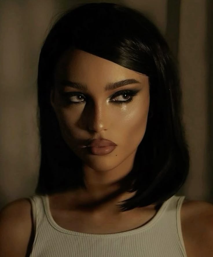 This one’s giving mystery and magic. The smokey siren eyeshadow look with bold, winged edges makes your eyes stand out instantly. The nude lips and defined brows balance everything, giving that perfect soft glam meets seductive siren energy. If you’re into smokey eye tutorials or love sultry night-out makeup, this look’s a total win.