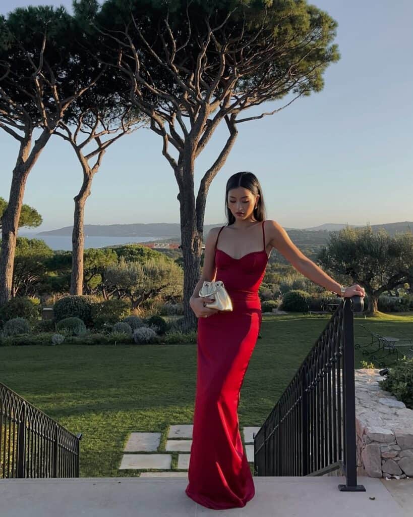 Quick style tip that actually matters: pick a red that works with your skin tone. Cool undertones? Go for a true cherry red. Warm undertones? Burgundy or coral red will make your skin glow like crazy. Add nude heels, simple gold jewelry, and let the dress do all the talking.