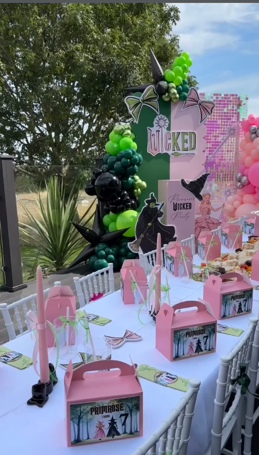Think Wicked birthday decorations, glowing green party décor, dramatic backdrops, and a little theatrical flair everywhere. It’s perfect if you’re planning a kids Wicked birthday party, a tween birthday celebration, or even a chic witch-themed birthday party for teens or adults. Honestly, it works for all ages.
